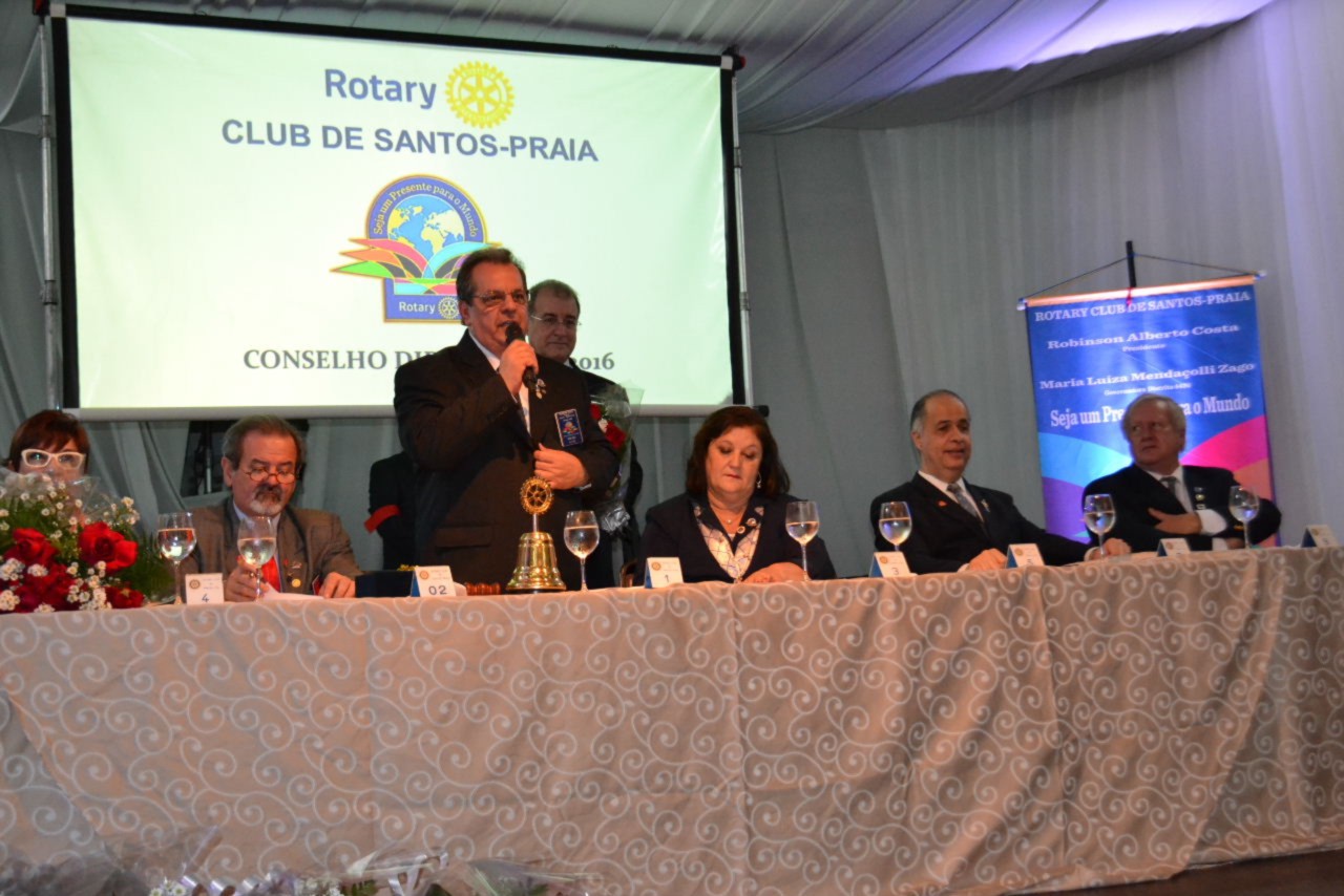 Os companheiros do Rotary Club de Santos-Praia receberam rotarianos do Distrito 4420 e demais convidados, durante festiva de Transmissão e Posse do seu conselho diretor, que será liderado pelo presidente presente Robinson Alberto Costa.