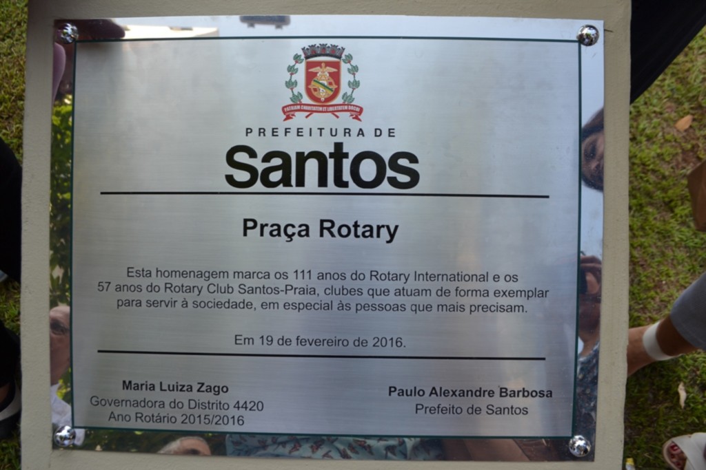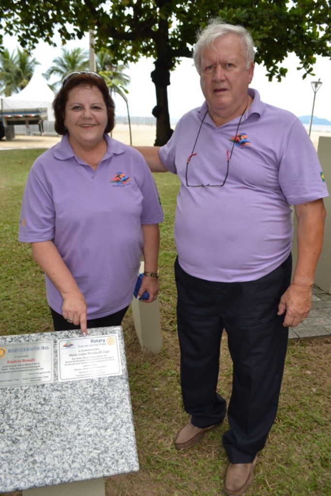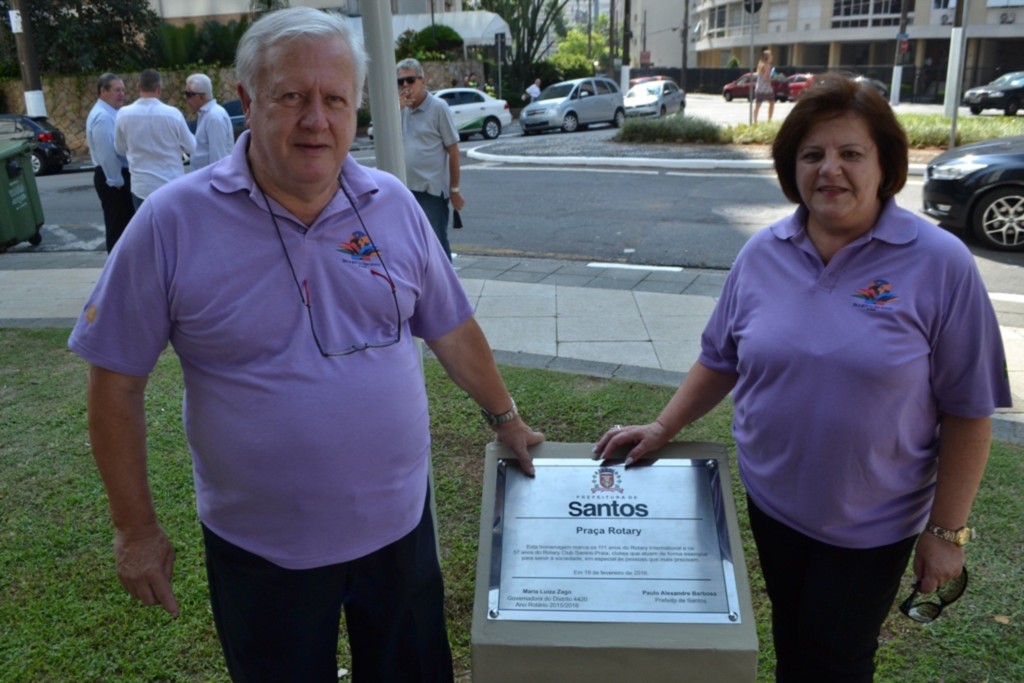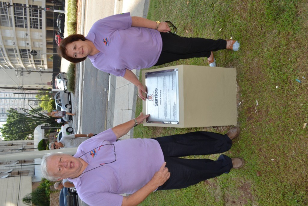 Iniciando a programação de Visita Oficial ao Rotary Club de Santos-Praia, a governadora Maria Luíza Mendaçolli Zago, ladeada por Cláudio Zago, seu esposo, esteve na Praça Rotary, no Gonzaga, em Santos-SP, que foi entregue totalmente reformulada no último dia 19.