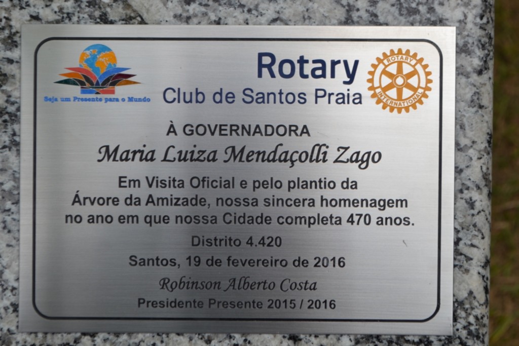 No período da tarde, aatividade na orla, nas proximidades da Av. Conselheiro Nébias, em Santos-SP, onde está localizado o Marco Rotário do clube, foi o plantio de uma muda árvore pela governadora Maria Luíza, que viu o registro deste ato, eternizado numa placa com o símbolo da gestão presente e o nome do casal governador. O clube, que já realizou a mesma ação, com outros governadores do distrito, segue contribuindo com a preservação do meio ambiente e a beleza do extenso jardim na orla da praia.