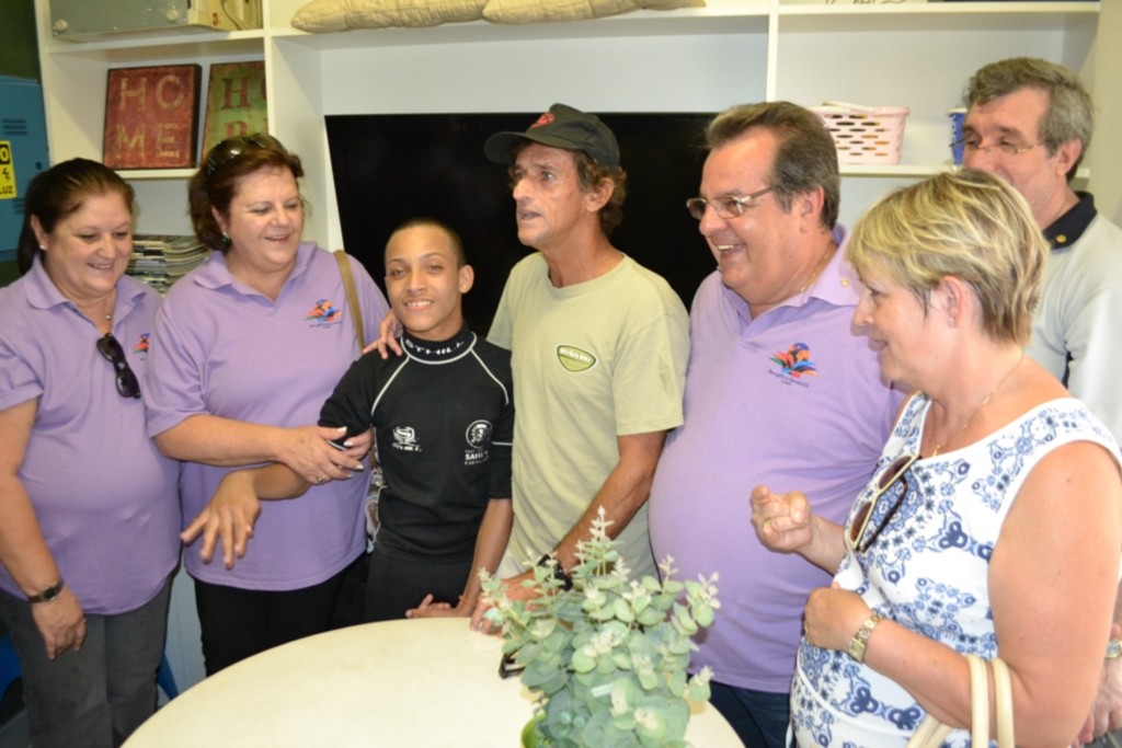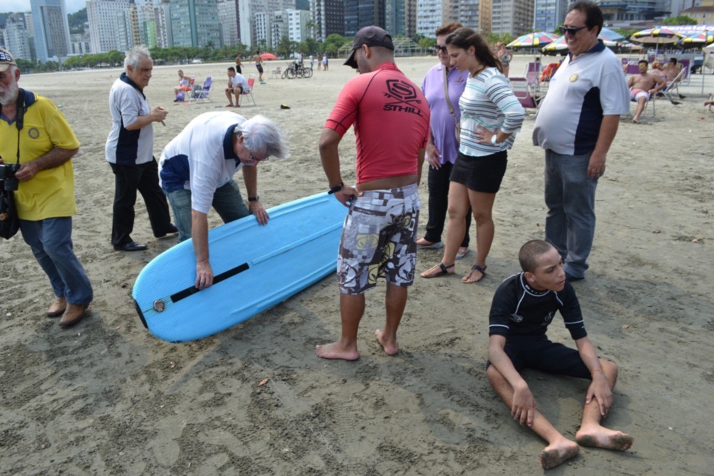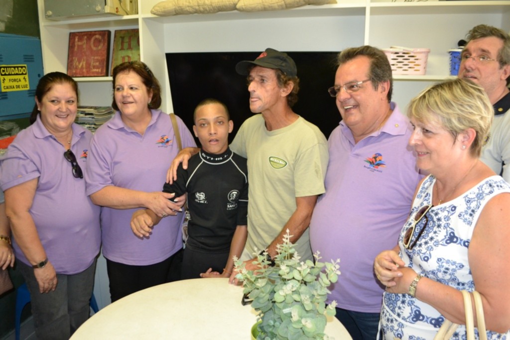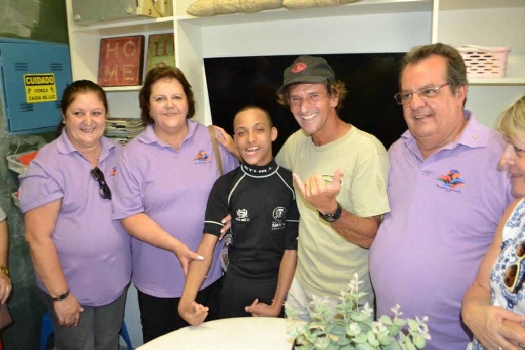 Ao conhecer o Projeto Sonhando Sobre as Ondas localizado no Jardim da Praia santista, o casal pode se comover com as histórias vitoriosas que o projeto acumula, algo gratificante que conta com a parceria dos rotarianos.