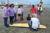 O professor Francisco Araña, coordenador da Escola Radical, recepcionou a comitiva atua há mais de 20 anos no projeto, dos quais, 10 deles com deficientes visuais. Em 2011, durante uma de suas viagens ao exterior divulgou o trabalho que vinha sendo realizado junto a 1a Escola Pública de Surf do Brasil e a participação do Rotary Santos-Praia, e houve interesse de implantação deste mesmo projeto em cidades do exterior, em particular Las Palmas e San Sebastian na Espanha.