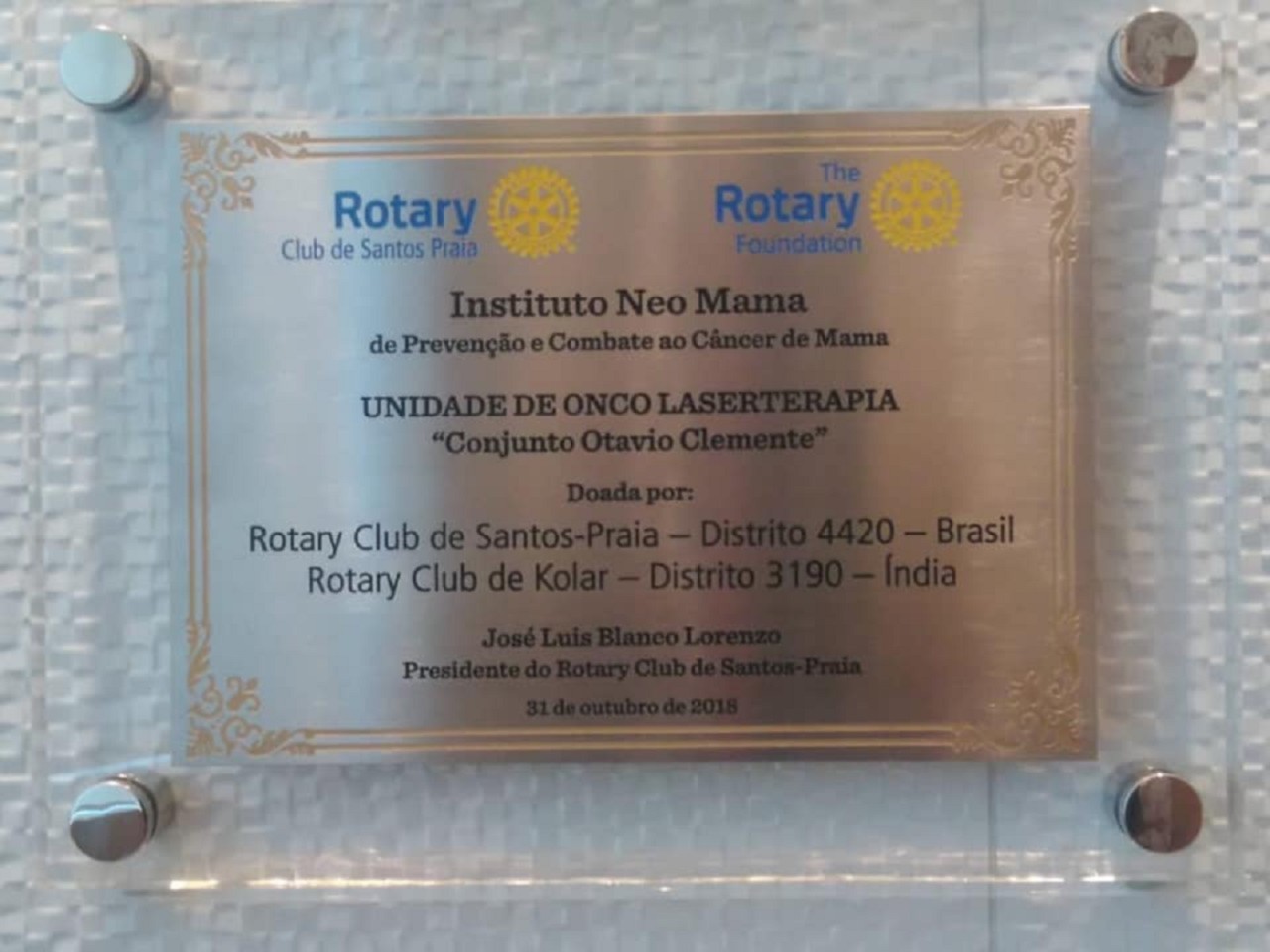 O Rotary Club de Santos-Praia ? D4420 ? Brasil, inaugurou em 31 de outubro de 2018, em parceria com o Instituto Neo Mama de Prevenção e Combate ao Câncer de Mama a unidade de Oncolaserterapia. A unidade tem por objetivo a meta de 40 atendimentos por dia de forma gratuita (inclusive SUS) aos pacientes sobreviventes ou em tratamento do câncer, de toda a Baixada Santista, propiciando qualidade de vida e minimizando as consequências do tratamento oncológico para a saúde bucal e sua sistêmica.
