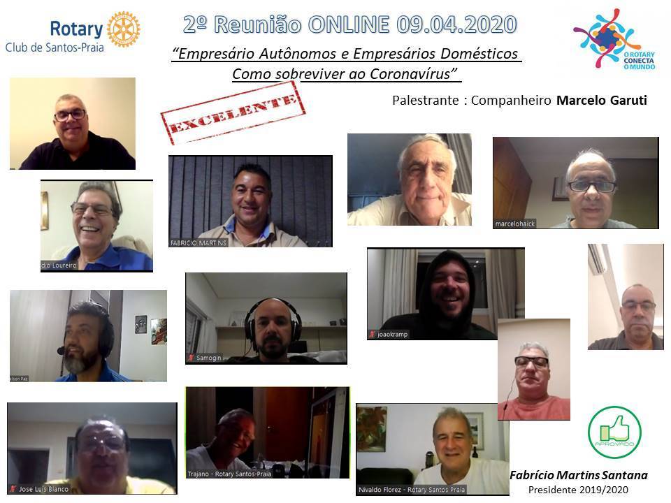 O Rotary Club de Santos-Praia realizou em 09 de abril a sua 2ª reunião digital.