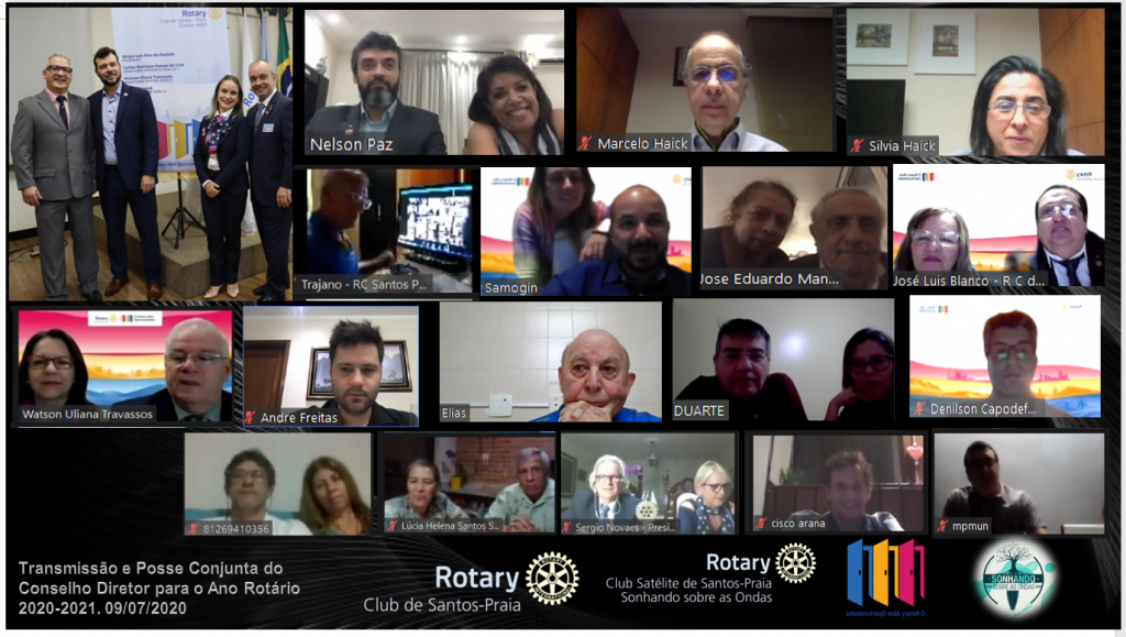 A reunião conjunta de Transmissão e Posse do Rotary Club de Santos-Praia e do Rotary Club Satélite de Santos-Praia Sonhando sobre as Ondas, do Conselho Diretor para o Ano Rotário 2020-2021, foi realizada na última quinta-feira (9), onde contou com a participação de companheiros, autoridades rotárias e familiares.
